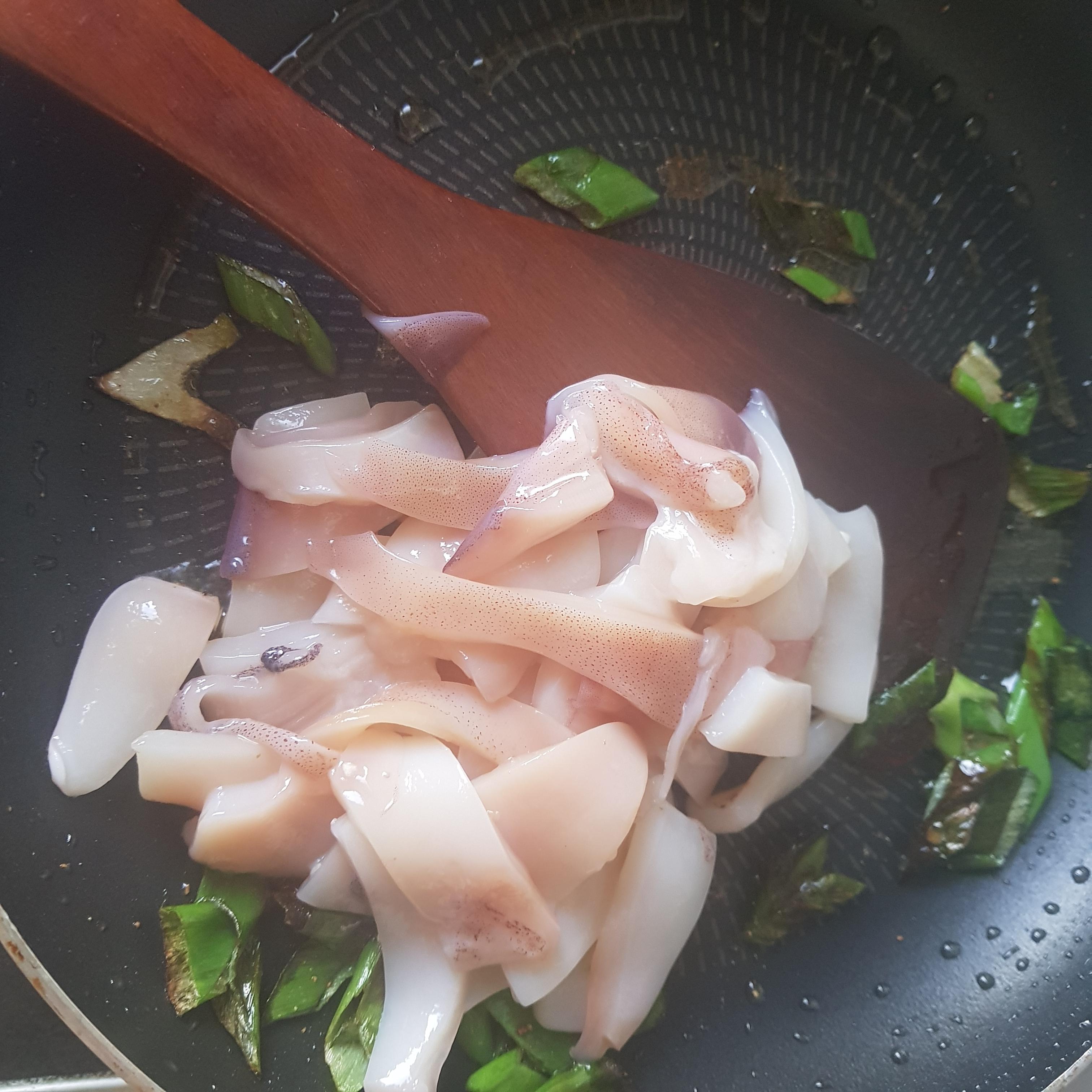 오징어와 야채를 손질하는 과정입니다
